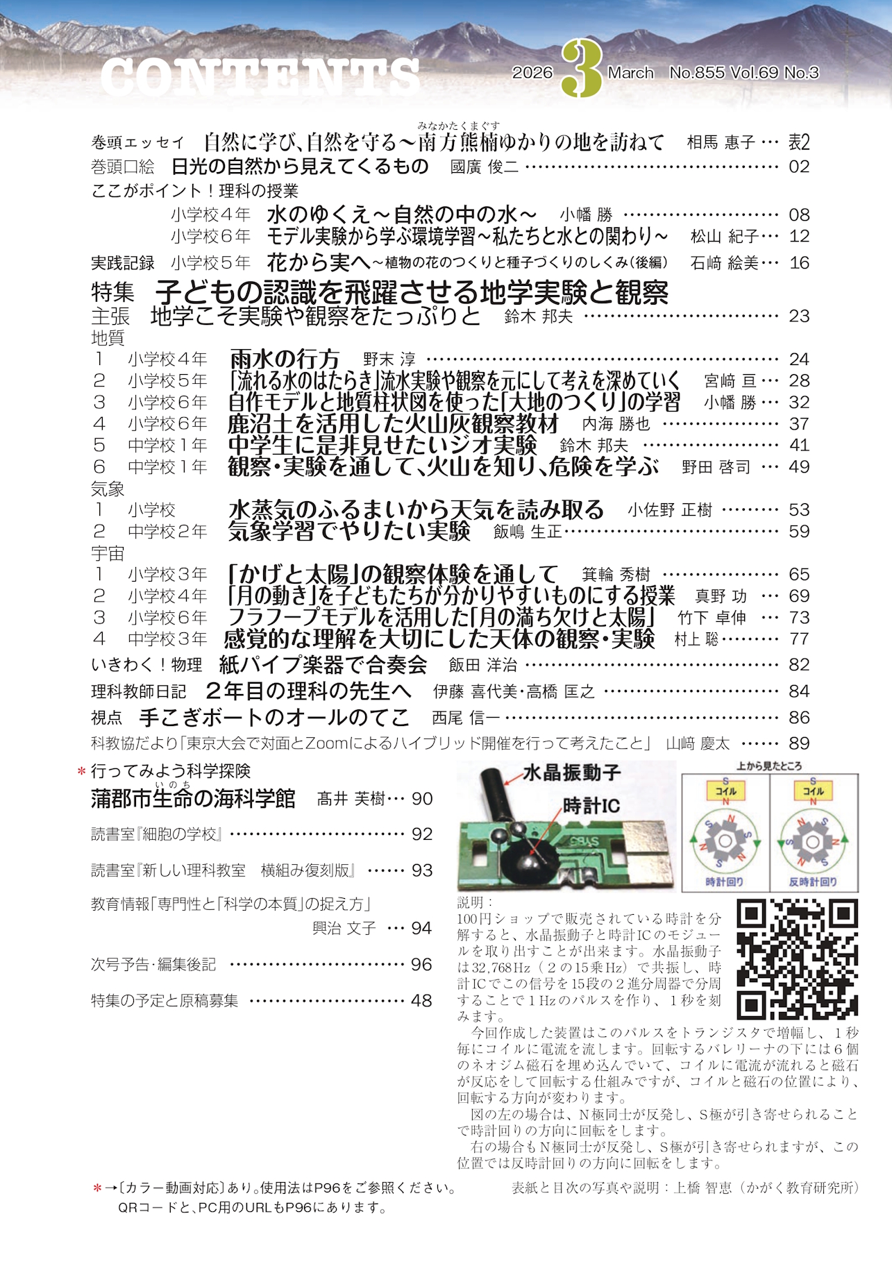 ホーム>理科教室 理科教室 2026年 3月号(No.855) ※ 表紙クリックで拡大 定期購読お申し込みフォーム 記事対応資料(動画 等) 記事対応資料(動画 等) 過去の『理科教室』目次 理科教室について 定期購読お申し込みフォーム 理科教室