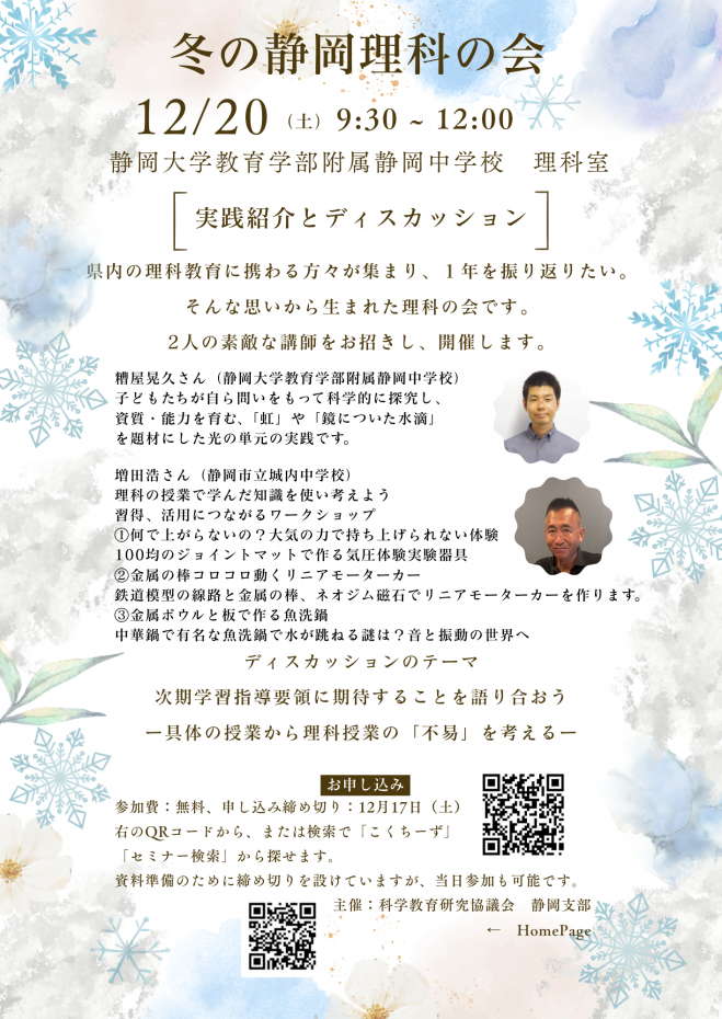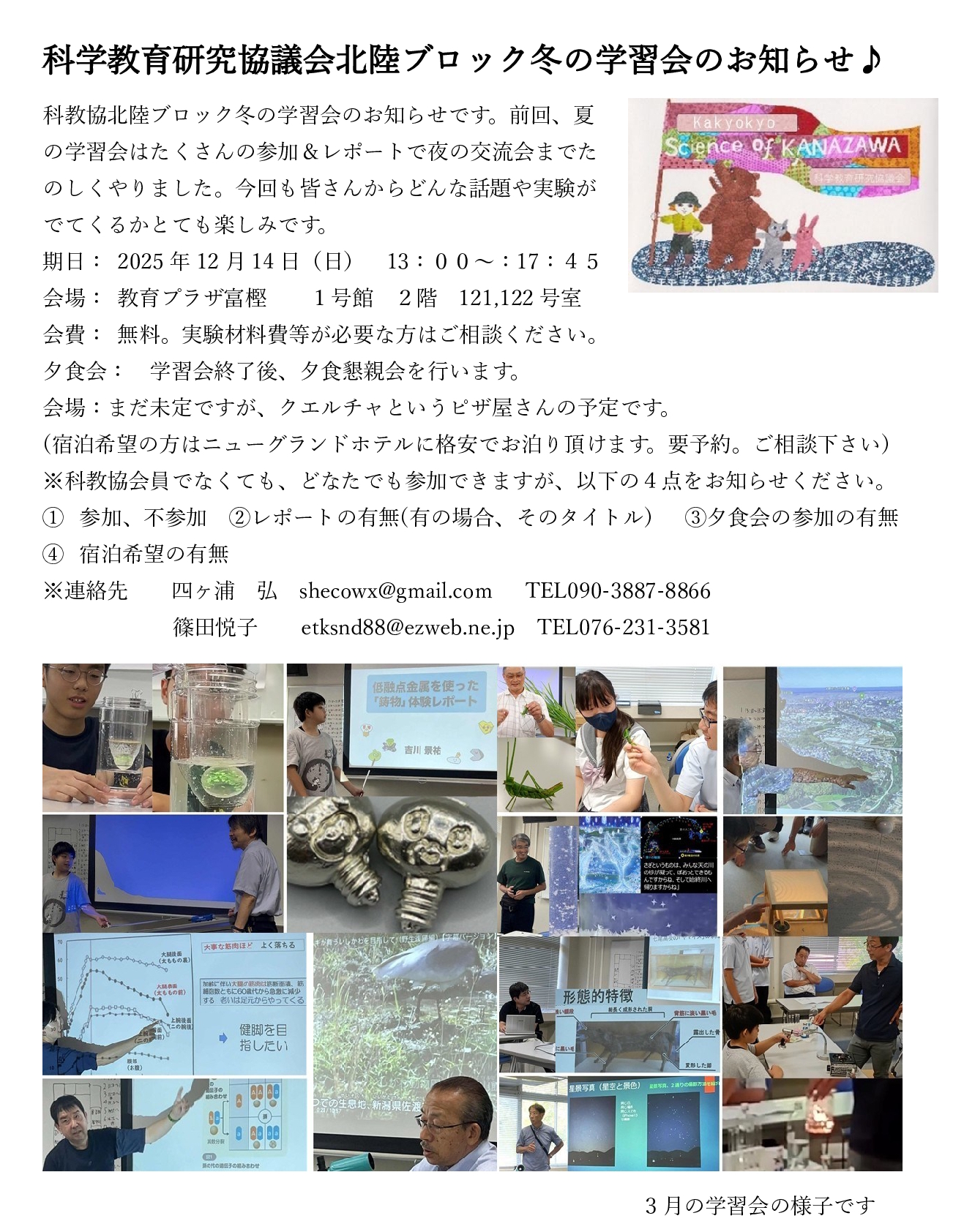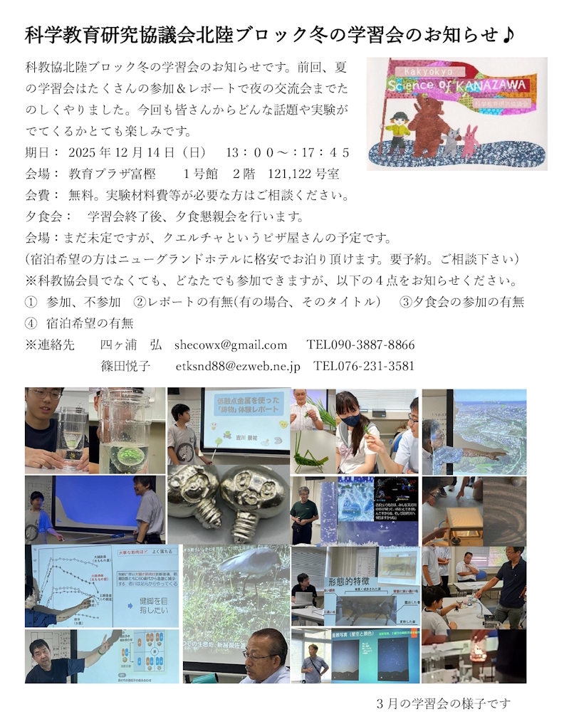 誰でも参加できる小学校・中学校・高校の理科の研究会です。